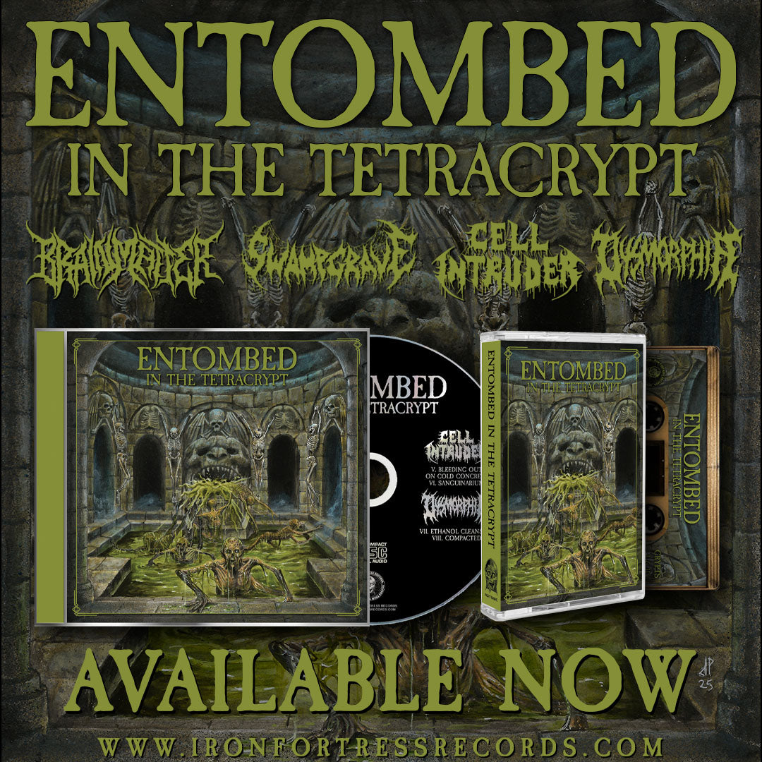 The new 4 way split featuring 2 brand new and exclusive tracks from Brain Matter, Cell Intruder, Swampgrave, and Dysmorphia is out now on digital/CD/MC. You can stream the entire split here and order your copy below!
