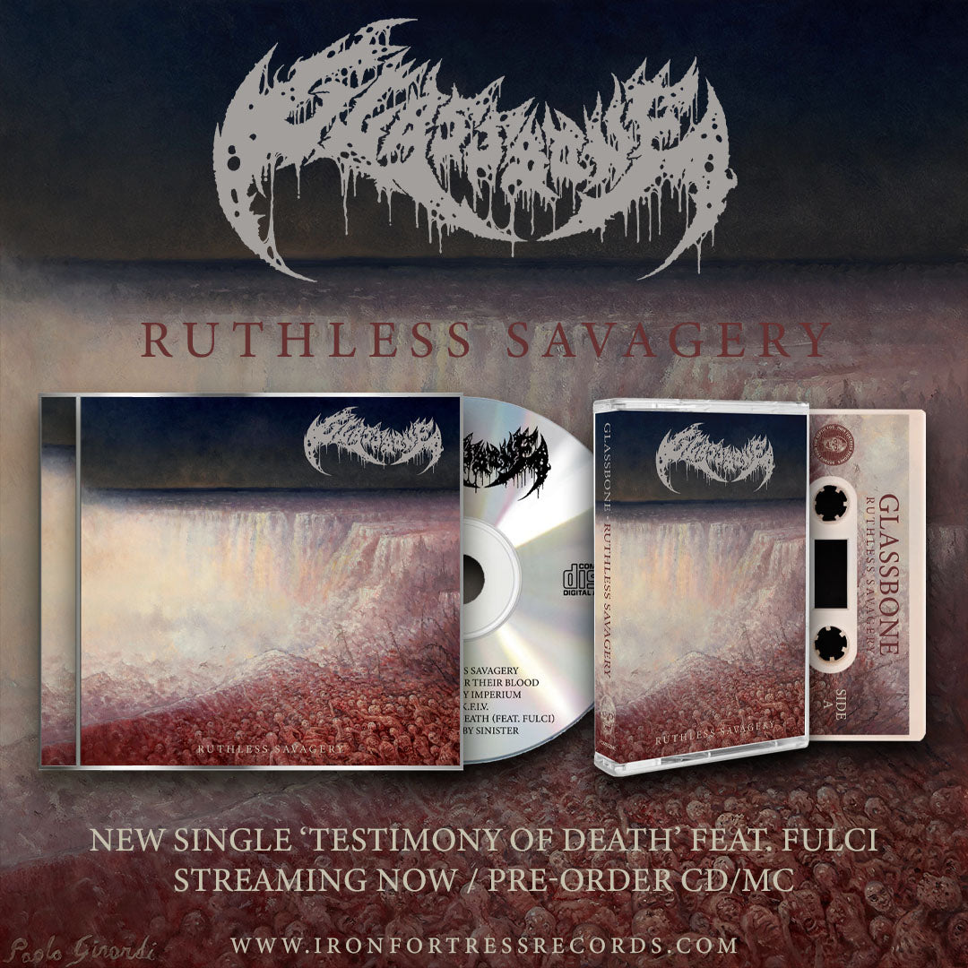 Glassbone's sophomore EP titled 'Ruthless Savagery' is now available for pre-order on CD and MC. You can stream the first single 'Testimony of Death' featuring Fulci now!
