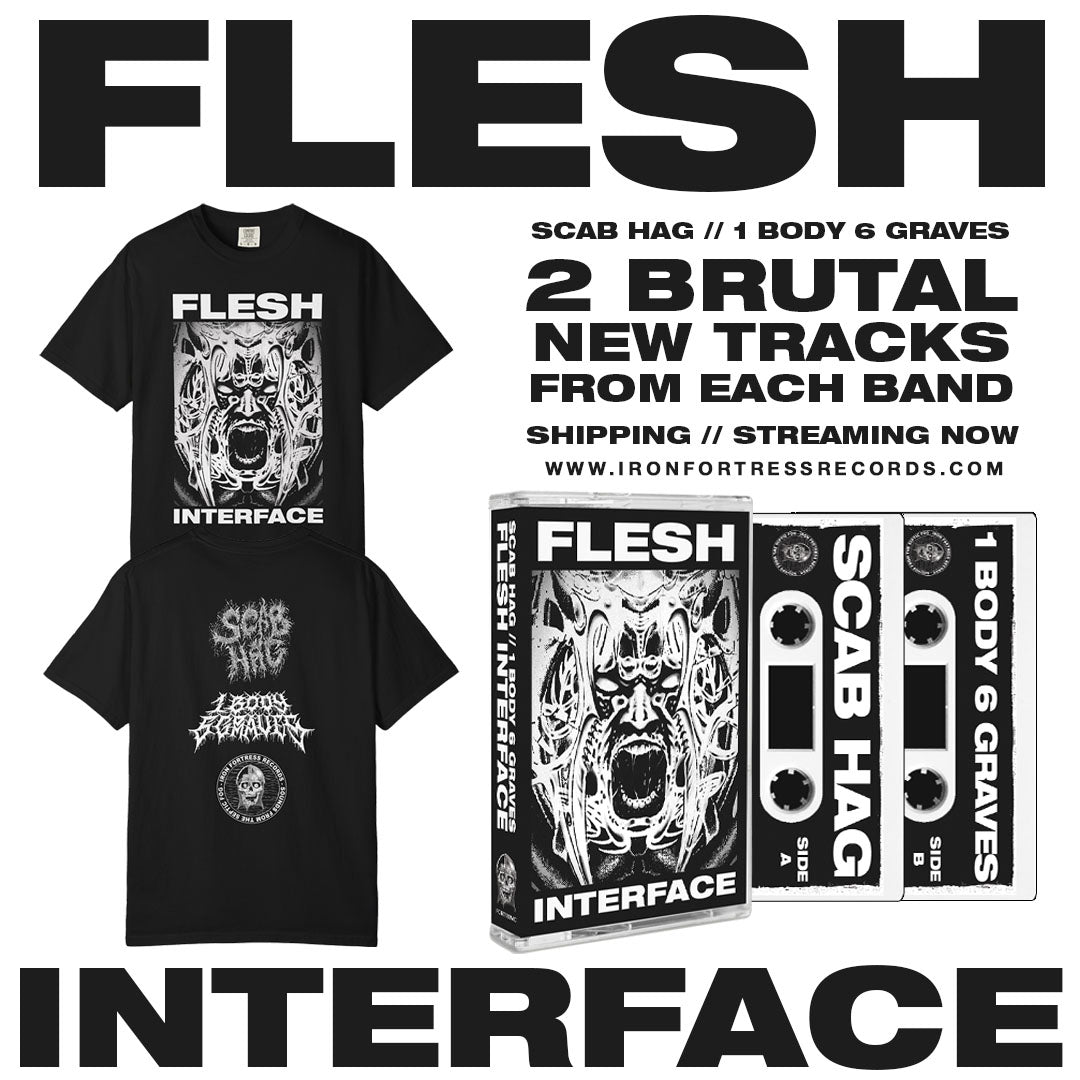Scab Hag and 1 Body 6 Graves just dropped a brand new 4 track split titled "Flesh Interface" and its available to order on cassette tape and streaming everywhere now!